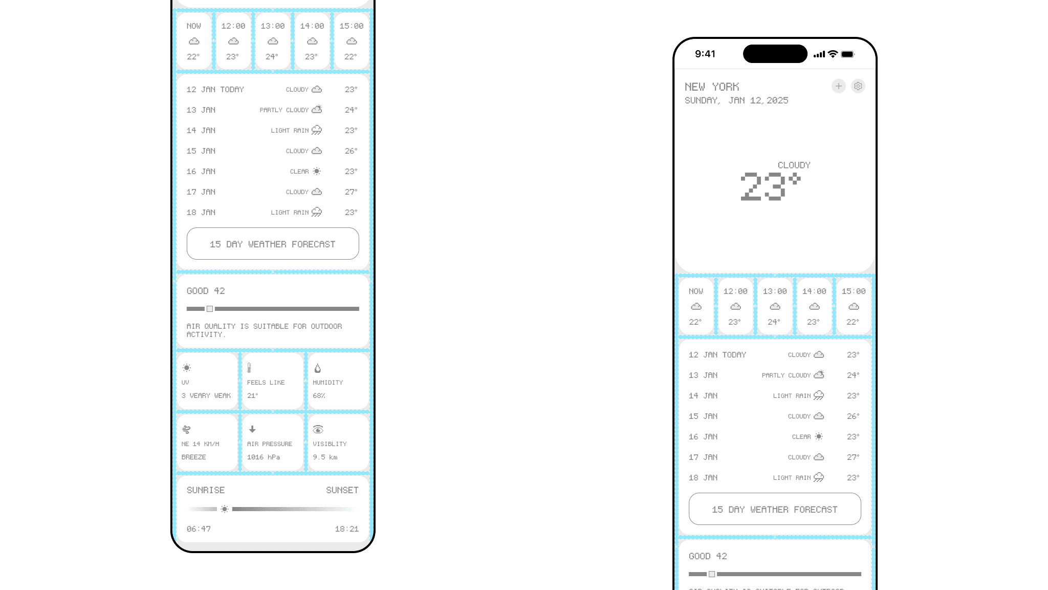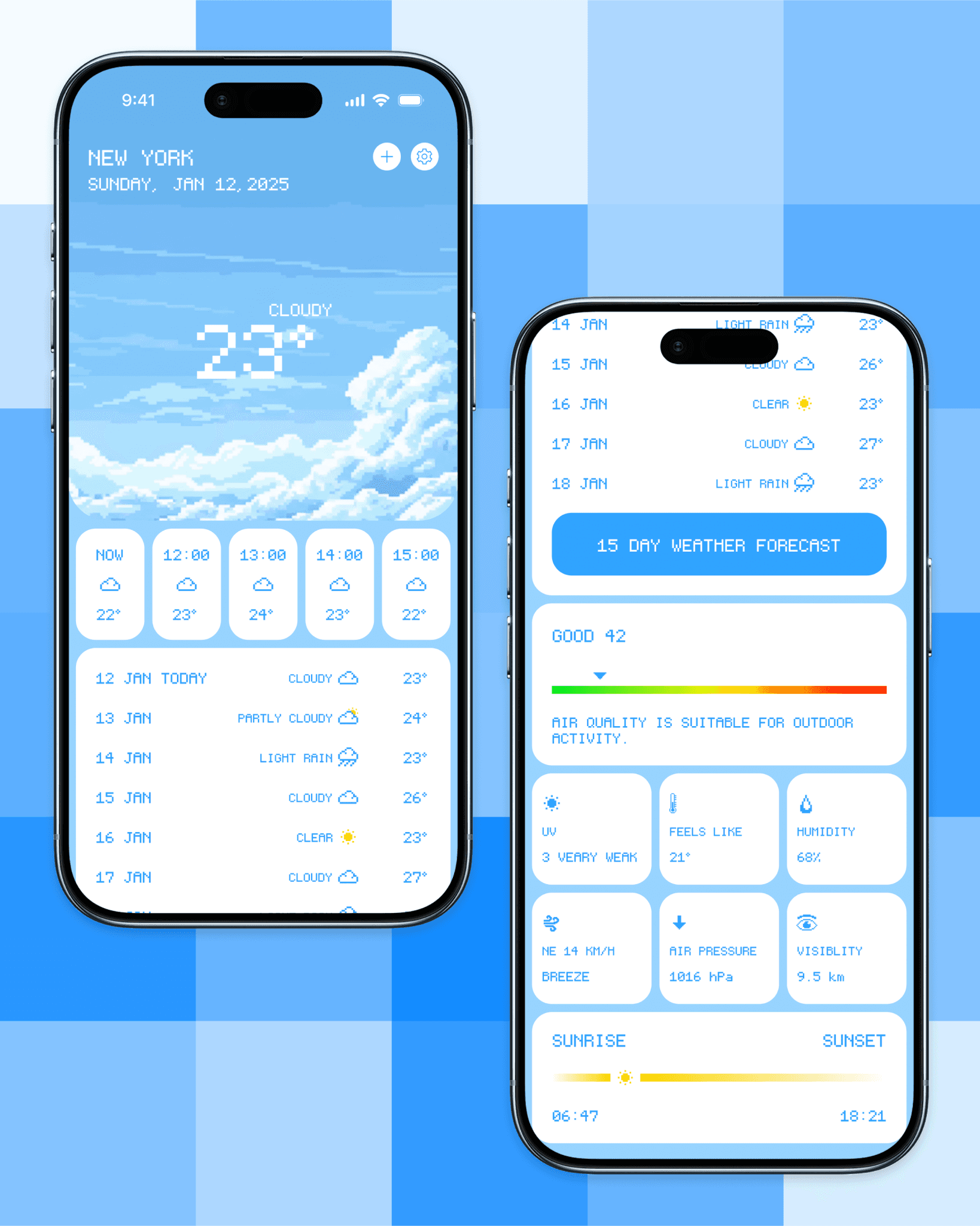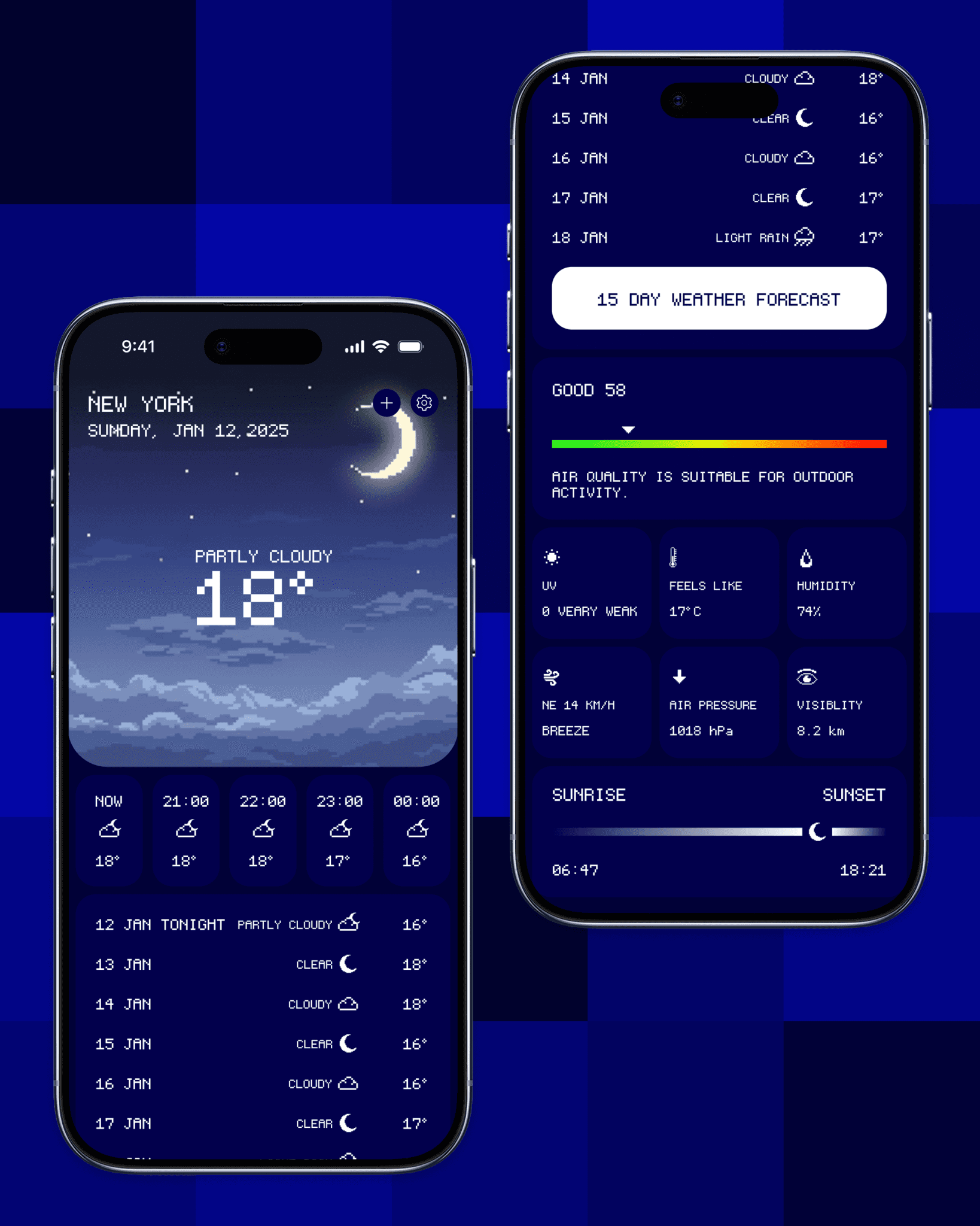 To refine my UI/UX and visual design skills, I created a conceptual weather app inspired by retro games.